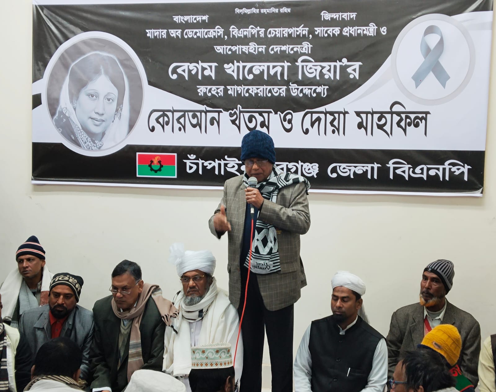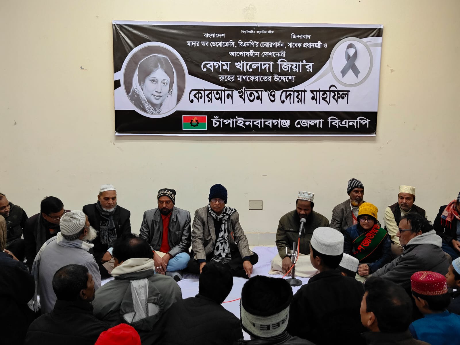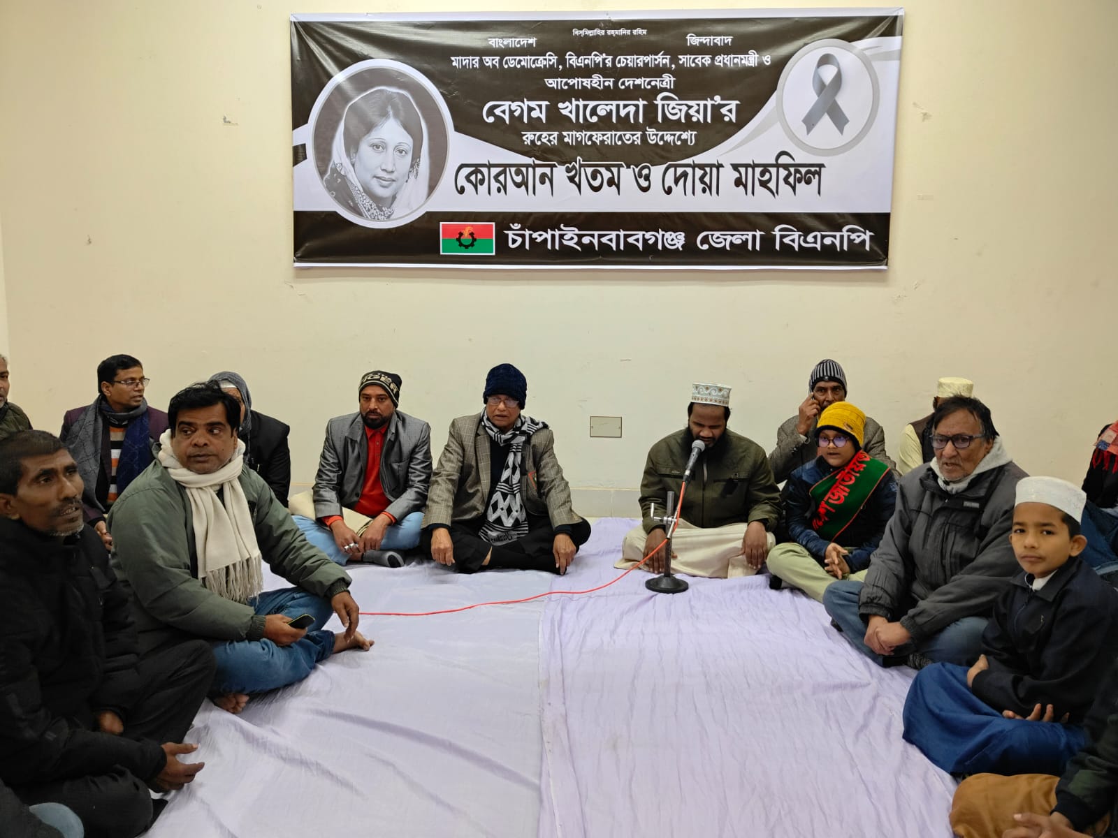 মাহিদুল ইসলাম ফরহাদ চাঁপাইনবাবগঞ্জ জেলা প্রতিনিধিঃ চাঁপাইনবাবগঞ্জ জেলা বিএনপির উদ্যোগে বিএনপির চেয়ারপার্সন ও সাবেক প্রধানমন্ত্রী বেগম খালেদা জিয়ার রুহের মাগফেরাত কামনায় কোরআন খতম ও দোয়া মাহফিল অনুষ্ঠিত হয়েছে।