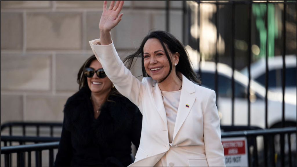 ওয়াশিংটন সফরের সময় তিনি কংগ্রেসে মার্কিন সিনেটরদের সঙ্গেও সাক্ষাৎ করেন। সেখানে সাংবাদিকদের সঙ্গে কথা বলার সময় সমর্থকরা—‘মারিয়া, প্রেসিডেন্টে’ স্লোগান দেন এবং ভেনেজুয়েলার পতাকা নাড়াতে দেখা যায়।