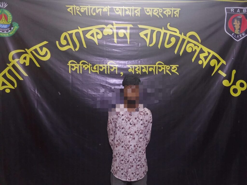 রোববার (৫ এপ্রিল) দুপুর আনুমানিক সাড়ে ১২টার দিকে র্যাব-১৪, সিপিএসসি ময়মনসিংহের একটি আভিযানিক দল জেলার মুক্তাগাছা উপজেলার সাহেব বাজার এলাকায় অভিযান পরিচালনা করে তাকে গ্রেফতার করে।